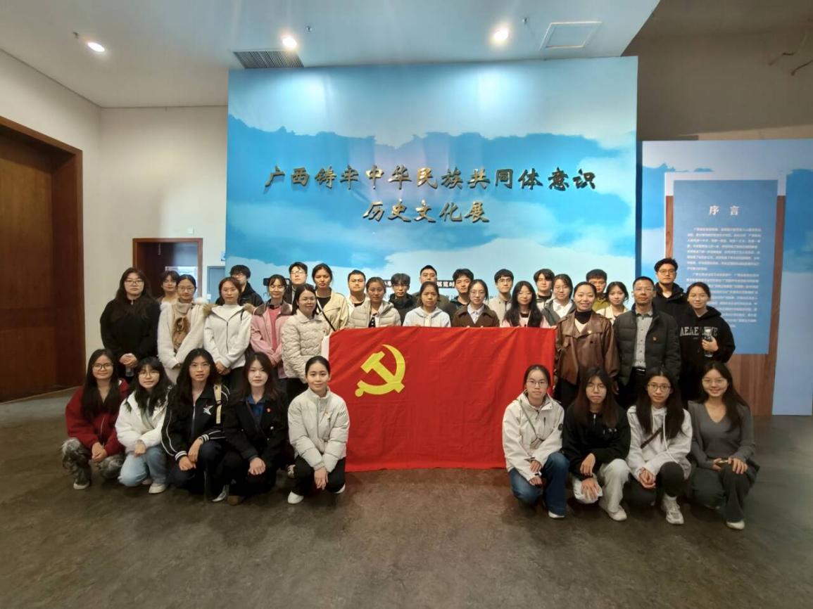 为深入学习贯彻习近平总书记关于加强和改进民族工作的重要思想,强化党员思想教育引领,铸牢中华民族共同体意识,11月23日上午,高师中心积极支持并参与电子工程学院本科生通信工程党支部组织的主题党日活动。此次活动组织师生党员共40人前往桂林市铸牢中华民族共同体意识教育实践基地——桂林博物馆开展学习实践。