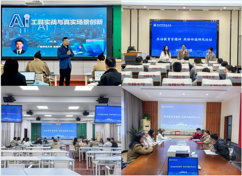 开班仪式结束后,首场讲座由广西师范大学何剑副教授主讲,他以《AI工具实战与真实场景创新》为题,围绕AI工具实战与真实场景创新,结合教育数字化转型趋势与高校教学管理实际需求,通过实操演练与案例剖析,系统讲解主流AI工具在教学设计、课件制作、教科研资料处理等真实场景中的落地应用,指导学员掌握“AI+教育任务”的创新实践方法,有效搭建了理论学习与实操训练的平台,助力青年教师提升教学能力与教学创新能力。