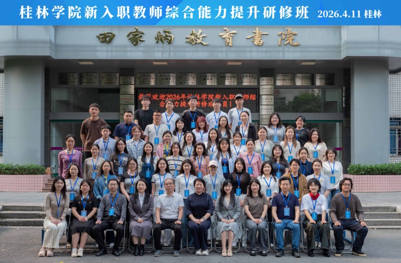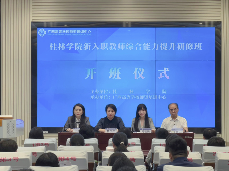 2026年4月11日,由桂林学院主办、广西高等学校师资培训中心承办的桂林学院新入职教师综合能力提升研修班顺利开班。桂林学院党委委员、副校长杨庆庆教授,桂林学院教务处处长王青山教授,广西高等学校师资培训中心副主任闫若婻教授以及来自桂林学院各教学单位的新入职教师共同参加仪式。